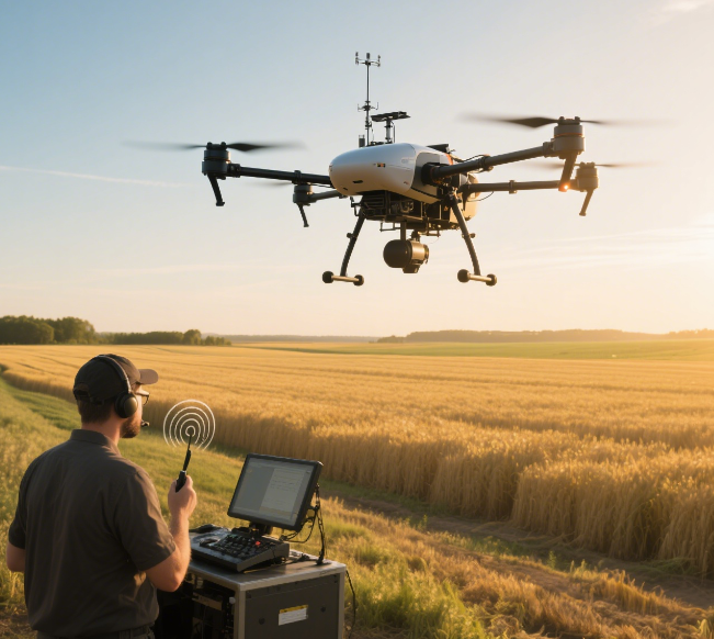 During the flight of an ordinary civil UAV, the ground operator sends control instructions to the UAV through this frequency band to realize the control of the UAV's flight direction, height, speed and other parameters. At the same time, the UAV also feeds back its own flight status, power and other telemetry data to the ground control equipment through this frequency band, so that the operator understands the working condition of the UAV in real time and ensures flight safety. It is widely used in some simple UAV flight performances, small logistics and distribution and other civilian scenes.