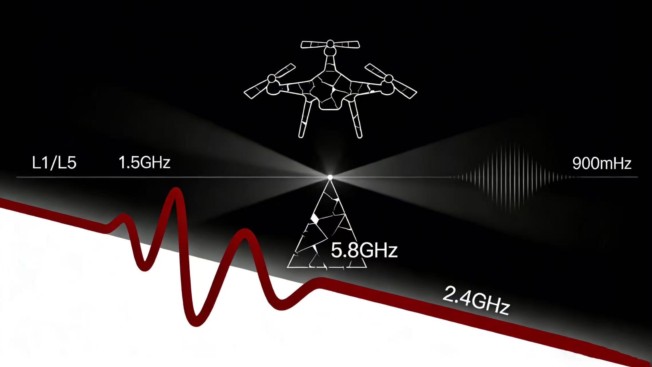 l Specialized Licensed Bands: Industrial or military drones may use lower-frequency bands like 900 MHz (868–928 MHz) for long-range, low-power C2 or 1.2 GHz (1.200–1.275 GHz) for secure telemetry, though these are less common in consumer applications.