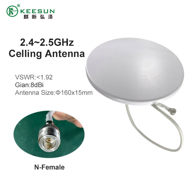 Stropna antena KEESUN KS50043 je zasnovana za zagotavljanje izjemne brezžične pokritosti v zaprtih prostorih za različne aplikacije 2,4 GHz. Ta antena, ki deluje znotraj kritičnega frekvenčnega pasu od 2,4 GHz do 2,5 GHz , je popolnoma primerna za uporabo z napravami Wi-Fi (802.11b/g/n), Bluetooth in drugimi napravami v pasu ISM. Njegova zasnova se osredotoča na ustvarjanje enotnega, vsesmernega vzorca sevanja, ki zagotavlja močan in dosleden prodor signala skozi velike notranje prostore, kot so pisarne, nakupovalna središča, letališča in hoteli.